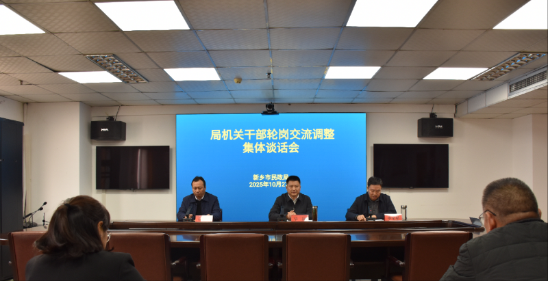 10月27日下午,市民政局党组组织召开机关干部轮岗交流调整集体谈话会,旨在统一思想、明确要求、压实责任,确保轮岗工作平稳有序、取得实效。