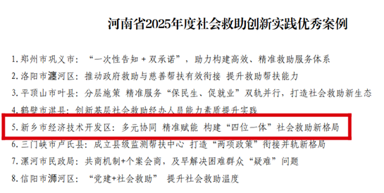 近日,省民政厅印发《关于公布2025年度社会救助创新实践优秀案例的通知》,我市经开区社会救助创新实践成果《多元协同精准赋能 构建“四位一体”社会救助新格局》获评优秀实践案例。